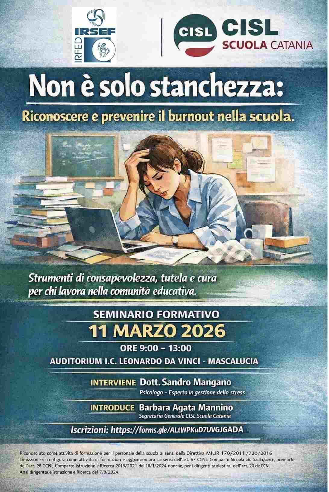 05/03/2026 - Seminario formativo CISL SCUOLA personale scuola riconosciuto - Burnout nella scuola - 11 marzo 2026